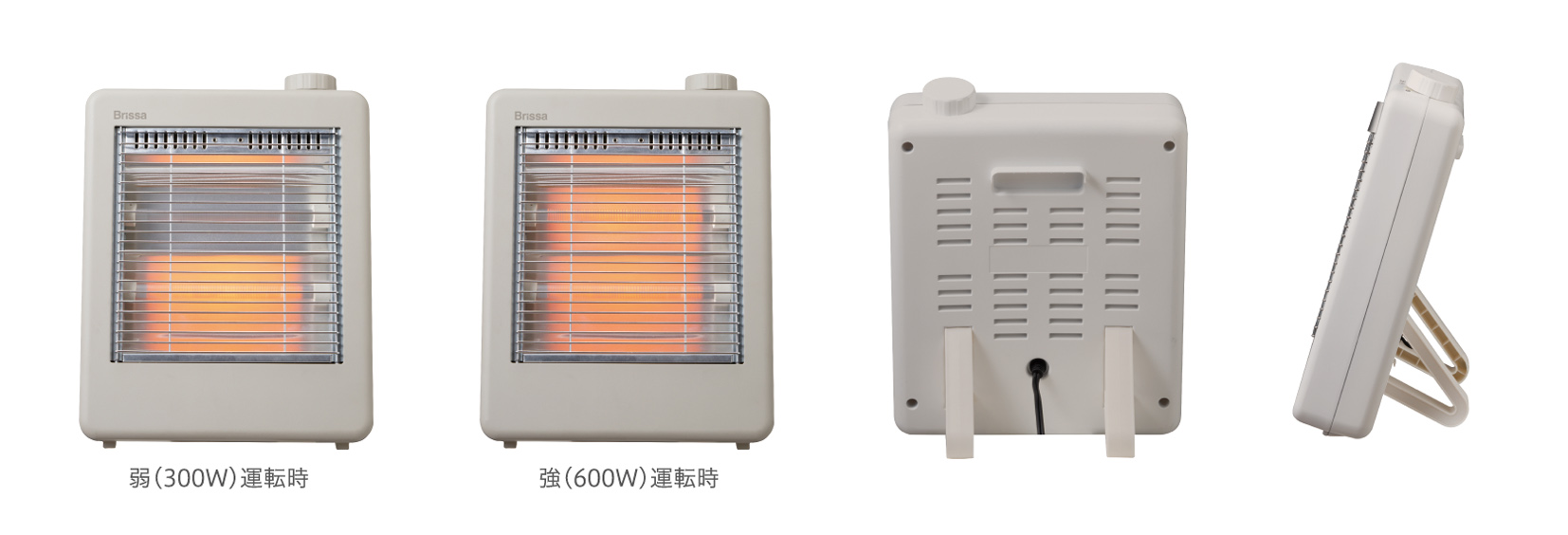 石英管ヒーター AC100V 50/60Hz 弱:300W / 強:600W 約幅265×奥行162×高さ330(mm) 約1.3kg 約1.6m 転倒OFFスイッチ、サーモスタット、温度ヒューズ