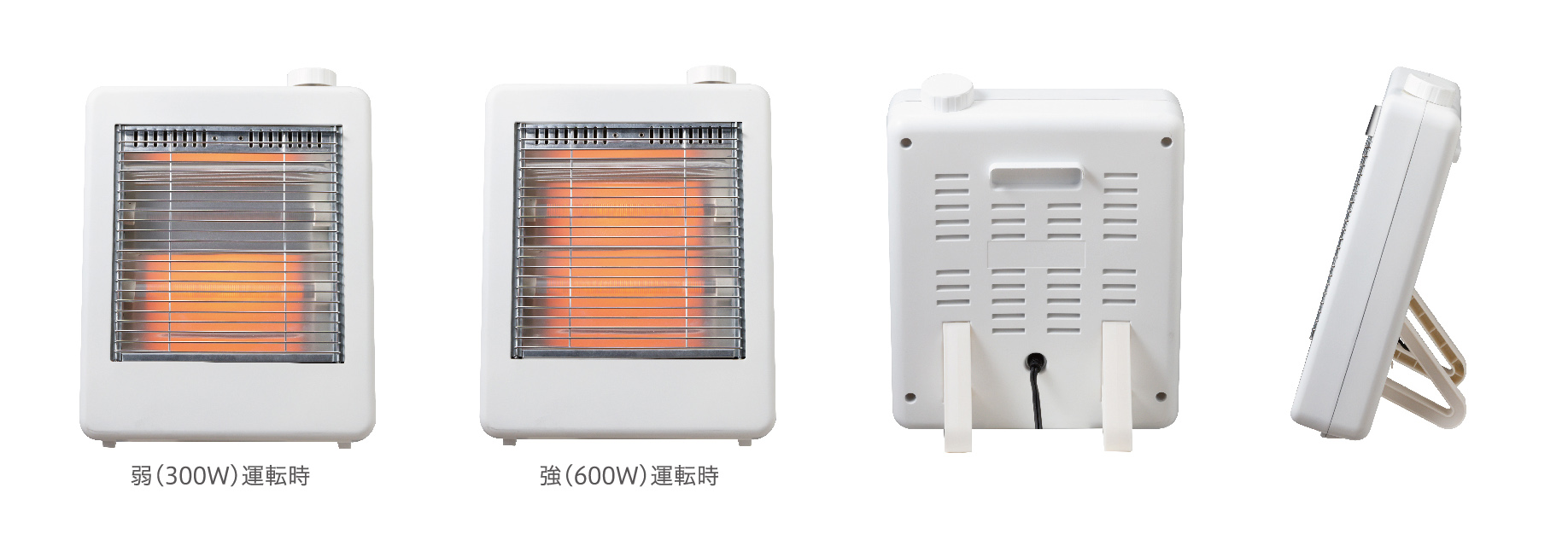 石英管ヒーター AC100V 50/60Hz 弱:300W / 強:600W 約幅265×奥行162×高さ330(mm) 約1.3kg 約1.6m 転倒OFFスイッチ、サーモスタット、温度ヒューズ