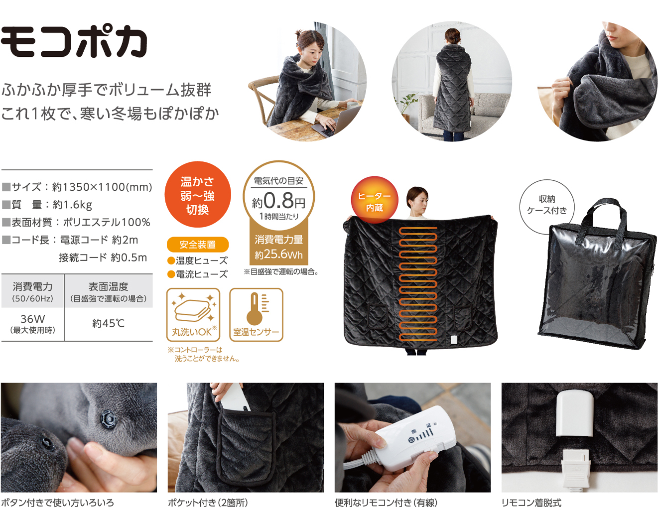 ●本体表面温度は、JIS C9210により室温20℃の状態でウレタンの上に敷き、衣類をかけた状態にしたときの値です。